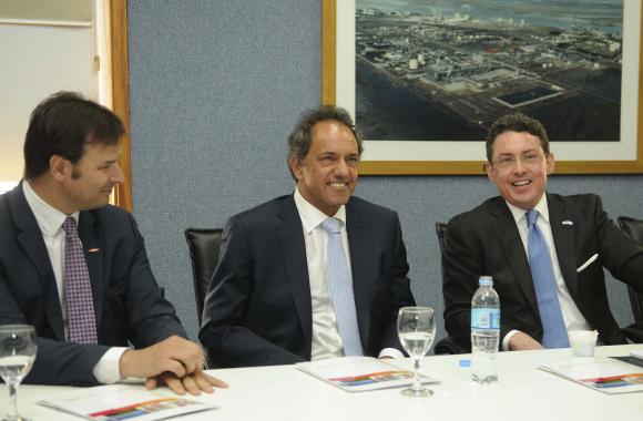 El gobernador bonaerense y candidato presidencial por el kirchnerismo, Daniel Scioli, se mostró ayer junto al embajador de EEUU, Noah Mamet, durante una visita a Bahía Blanca, donde intentó transmitir “confianza” a los “inversores”.