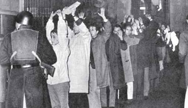 Ahogados por los gases, golpeados por los bastones, rotos a culatazos, estudiantes y profesores pasaron por una doble fila de infantes que replicaron el castigo antes de llevárselos detenidos.