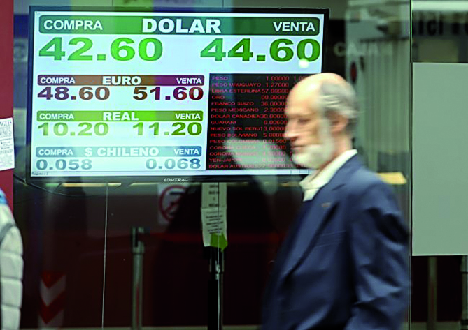 En la plaza mayorista también cedió, a los 43,67 pesos. El monto operado en el segmento de contado sumó USD 753,2 millones, mientras que en futuros se pactaron USD 1.064,4 millones en el Rofex. Los contratos de dólar futuro (en pesos atados al tipo de cambio) para fin de mes concluyeron a $44,85, mientras que para diciembre de 2019 cerraron a 57,85 pesos.