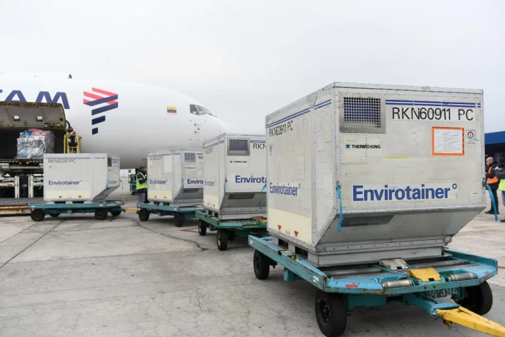 Las dosis de Astrazeneca, cuya terminación fue realizada en la planta AMRI de Albuquerque, llegaron al Aeropuerto Internacional de Ezeiza a las 10 en el vuelo de carga LATAM UC1407.