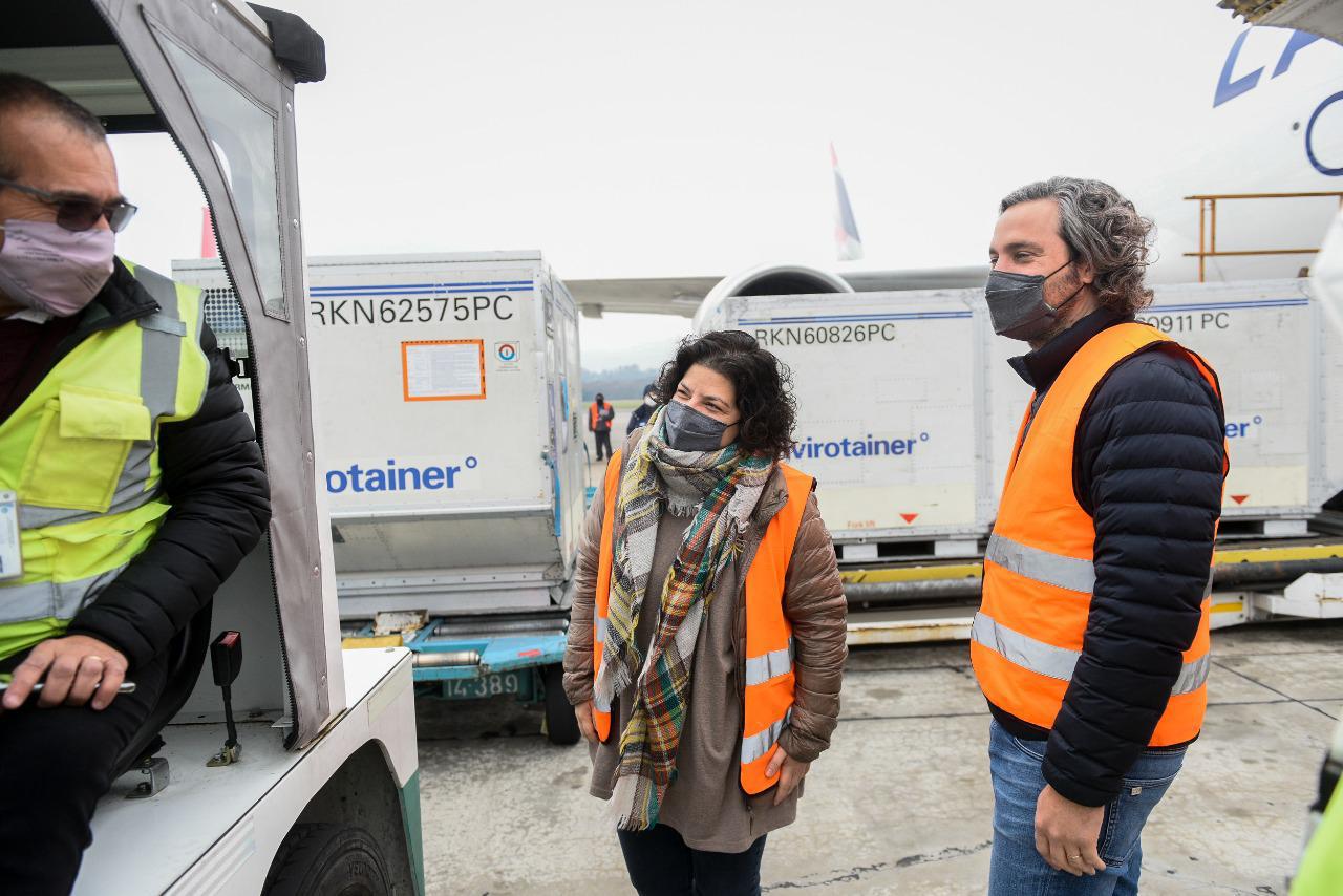 “Es la campaña de vacunación más grande de nuestra historia que entre todos y todas venimos llevando adelante”, destacó el jefe de Gabinete, Santiago Cafiero, al presenciar el arribo del vuelo junto a la ministra de Salud, Carla Vizzotti.