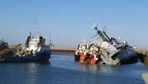Según trascendió, este lunes el buque amaneció apoyado contra un buque pesquero, con una inclinación de unos 50 grados.