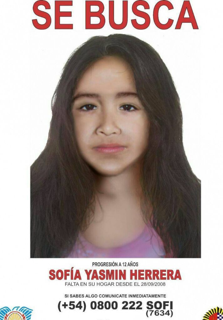 Sofía Herrera desapareció el 28 de septiembre de 2008 cuando tenía tres años de edad y salió con sus padres a un día de campo.  Fuente: ADN SUR