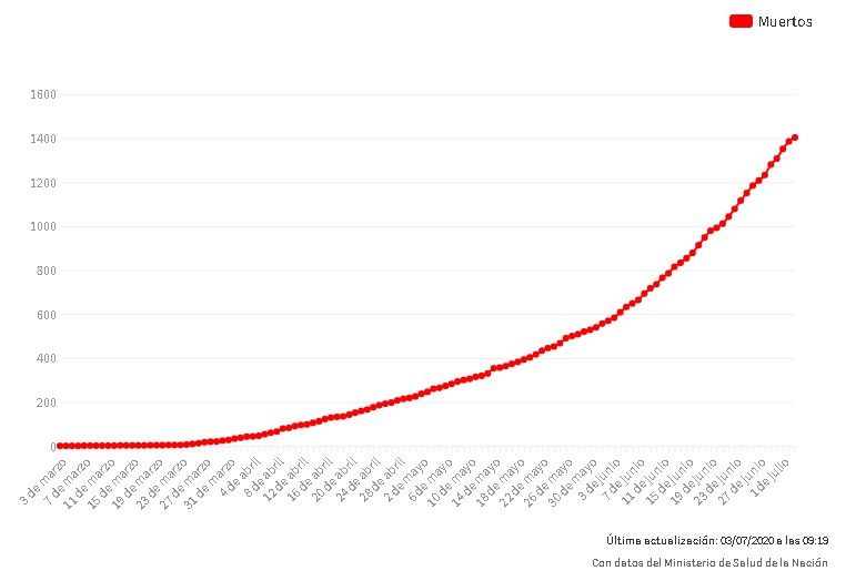 El Ministerio de Salud informó este viernes 18 nuevas muertes por coronavirus que se produjeron desde el último reporte, emitido el jueves. Así, el total de víctimas fatales en el país llega, hasta el momento, a 1403.