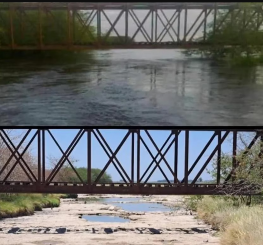 El productor compartió algunas fotos del río en las redes sociales y las comparó con imágenes que había tomado en 2021. La diferencia está a la vista. De un gran caudal se pasó a un lugar seco.