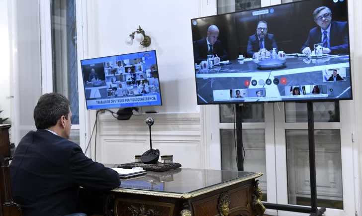 En la Cámara de Diputados, en tanto, Massa ya envió a los jefes de los bloques políticos el borrador de la resolución para sesionar online en una semana o 15 días, mediante un sistema que incluirá votación por parte y "garantías de seguridad y tecnológica", según adelantó.