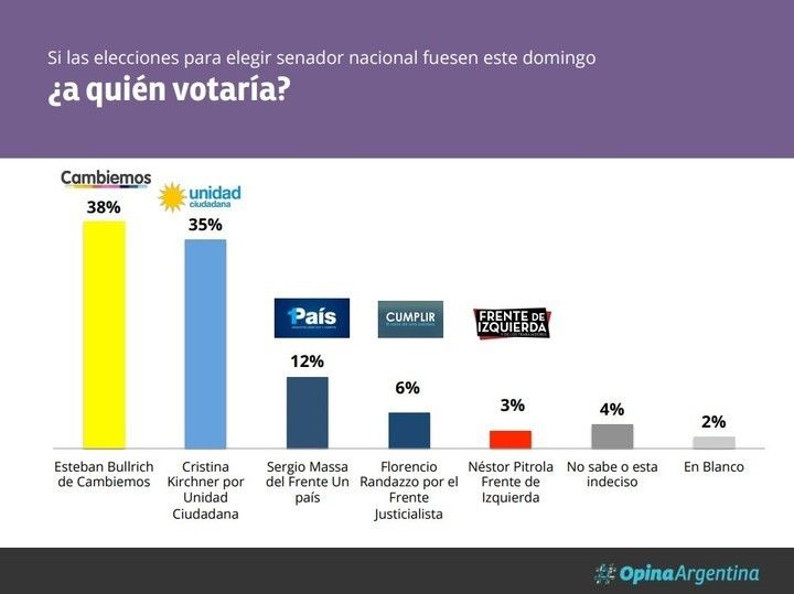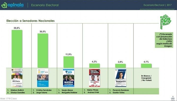 A continuación, el resultado para cada candidato según Opina Argentina, Opinaia, Synopsis y UAI, Axonier y Taquion: