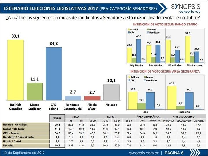 Finalmente, en las PASO, Cristina Kirchner superó a Esteban Bullrich por 20.324 votos en la carrera por la senaduría en la provincia de Buenos Aires. Sin embargo, según se prevé en las encuestas, el número podría dar vuelta en favor del candidato de Cambiemos en octubre.