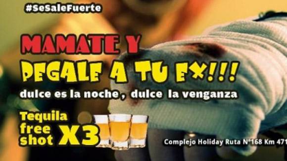 Un boliche bailable de la ciudad de Santa Fe fue clausurado por el municipio bajo la acusación de incitación a la violencia y al consumo de alcohol, dado que en sus afiches de publicidad proponía ‘mamate y pegale a tu ex‘ con la foto de un joven con dientes rotos, sangre y ojos morados.