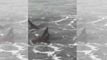 En un video que se viralizó en redes sociales puede verse cómo los animales nadan entre la espuma, muy cerca de la playa. Las autoridades de Monte Hermoso confirmaron que se trata de tiburones y aseguraron que son "inofensivos".