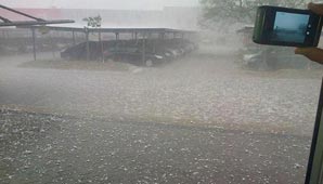El Colegio San Buenaventura suspendió las clases hoy debido a que la intensa pedrea rompió vidrios y causó daños en el polideportivo de la institución.