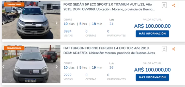 El remate será a través de la página web Narvaezbid de manera virtual. Para anotarse, los interesados mayores de 18 años deberán registrarse en el sitio antes de la fecha de inicio. Para observar los modelos se debe ingresar a https://www.narvaezbid.com.ar/, r a la derecha de la pantalla y bajar hasta el tercer eslabón de remates. Luego, hacer click en el recuadro que dice "Mila" ("por ejecución prendaria"). La subasta termina el 18 de marzo a las 14 horas.