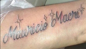 A dos días de haber sido electo presidente, Mauricio Macri tiene fanáticos a muerte. De hecho, algunos de ellos ya empezaron a cometer algunas locuras. Es el caso de un anónimo que se tatuó el nombre del líder de Cambiemos en el antebrazo y la frase "Es hoy. Es acá. Es ahora", que Macri repitió una y otra vez en su discurso de festejo.