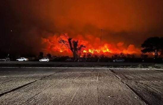 Según medios locales, el frente del siniestro se ubicó en el lateral oeste de la ruta nacional 50 y se extendió desde el ingreso sur a la entrada norte de la ciudad.