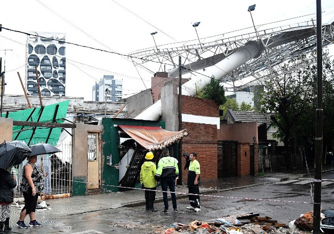 En tanto, un rayo cayó en la madrugada cerca de las 3.30 en medio de la fiesta electrónica "Buenos Aires Trance XV" que se realizaba al aire libre en el estadio Malvinas Argentinas, barrio porteño de La Paternal, y destrozó parte del escenario pero tampoco causó heridos entre los asistentes, que fueron evacuados luego del incidente.