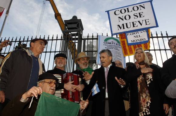 Los gobiernos nacional y porteño volvieron a cruzarse ayer por el traslado del monumento de Cristóbal Colón, después de que la administración kirchnerista ratificó la mudanza de la estatua emplazada detrás de la Casa Rosada, donde manifestantes reclamaron a la Presidenta que revea la medida.