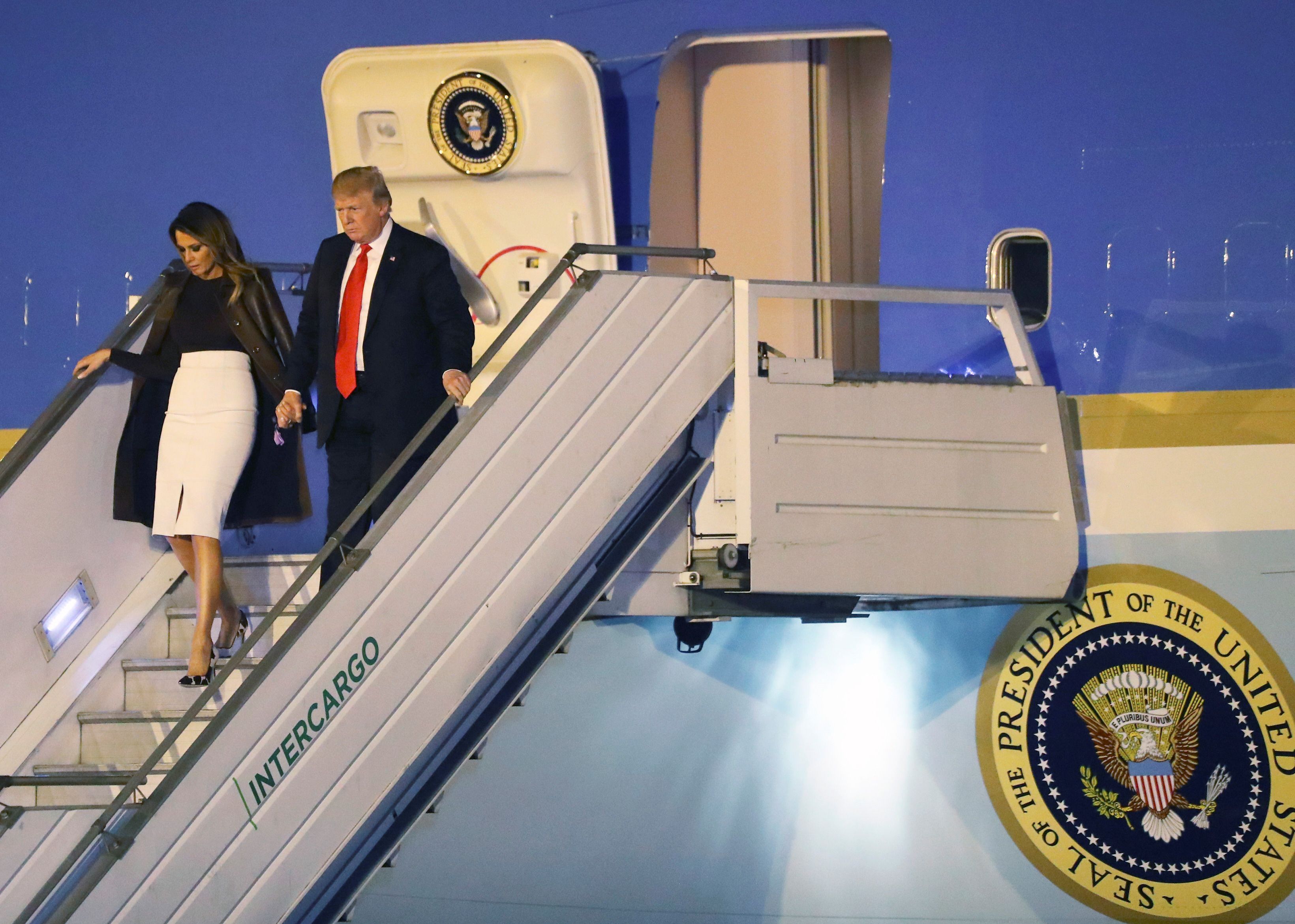 Histórico. Trump a su llegada a la Argentina, el primer país de Latinoamérica que visita desde que asumió la Presidencia de EEUU hace casi 2 años.