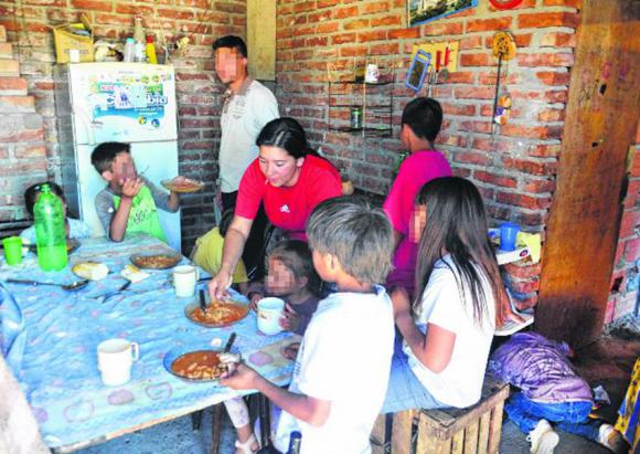 La familia abrió los brazos y los cobijó en una habitación en donde faltan camas y colchones para tantos integrantes y una pequeña cocina, con una cacerola grande, de donde en el almuerzo de ayer el aroma a guiso de fideos abría el apetito. Una mesa rectangular que no deja lugar para tantos comensales y alimenta por turnos, priorizando a los más chiquitos.