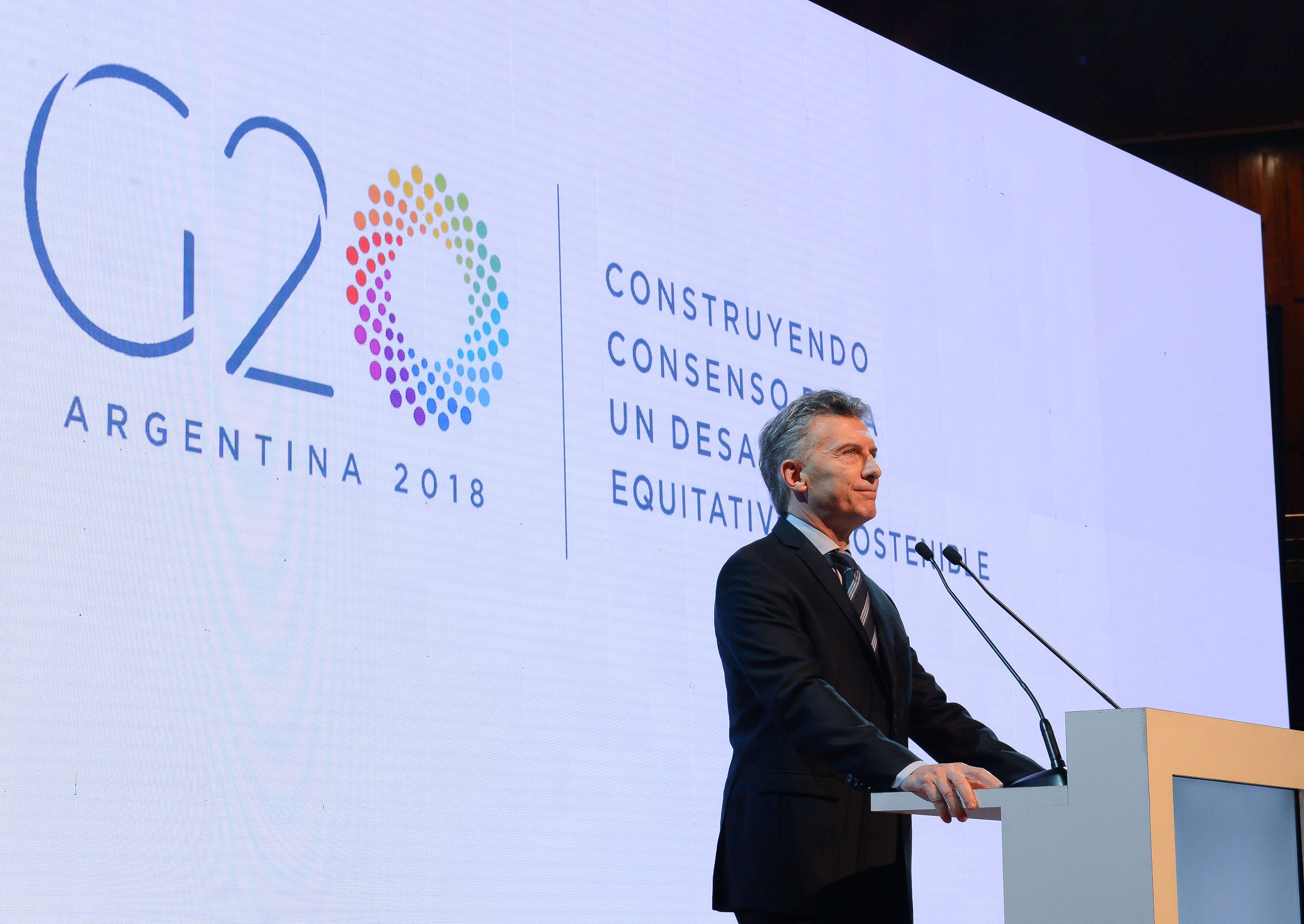 En un discurso en la ciudad de Buenos Aires ante una multitud de autoridades nacionales e internacionales, Macri invitó a los presentes a trabajar “todos juntos” para afrontar “uno de los mayores desafíos” de la historia del país y liderar el G20 “con el espíritu de ser un mediador de buena fe”.