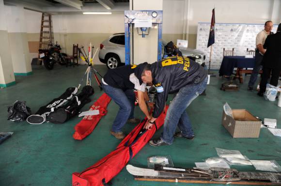 El funcionario destacó ‘la imaginación‘ con la que los narcos se las ingeniaban para ocultarla en esquíes para trasladarla. Según informó el secretario, ‘por cada esquí iba un kilo de droga, iban 7 pares de tablas así que estaban destinados a enviar 14 kilos a España en este envío‘. Berni agregó que como un kilo de cocaína se compra en 6.000 o 7.000 pesos en los países productores, ‘ese par de esquíes en España tiene un valor de 150.000 euros para empezar‘. Berni precisó que entre los detenidos se encuentran ‘los 2 principales sospechosos de ser los cabecillas de la banda, un hombre de apellido Moschela y otro llamado Ariel Álvarez‘. Se trata del hermano del relacionista público ‘Gaby‘ Álvarez, quien está sindicado como el encargado de ‘comercializar la droga en fiestas electrónicas y a clientes adinerados de la zona Norte de la provincia de Buenos Aires y de Capital Federal. Es sospechoso ‘de ser el que generaba todas las acciones tendientes a abrir los mercados‘, dijo Berni. (Télam)