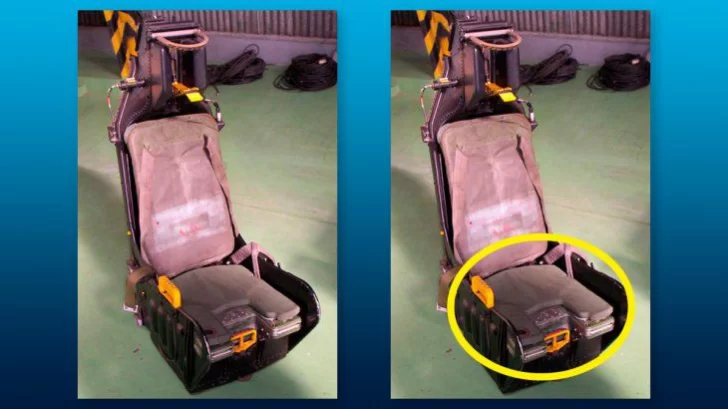 La eyección funcionó en todas sus etapas, pero se vio un detalle que preocupó a los observadores, el piloto yacía sobre la base del asiento que es un kit de supervivencia RSSK-8b que en teoría no debía caer justo en el mismo sitio que el comandante del avión.