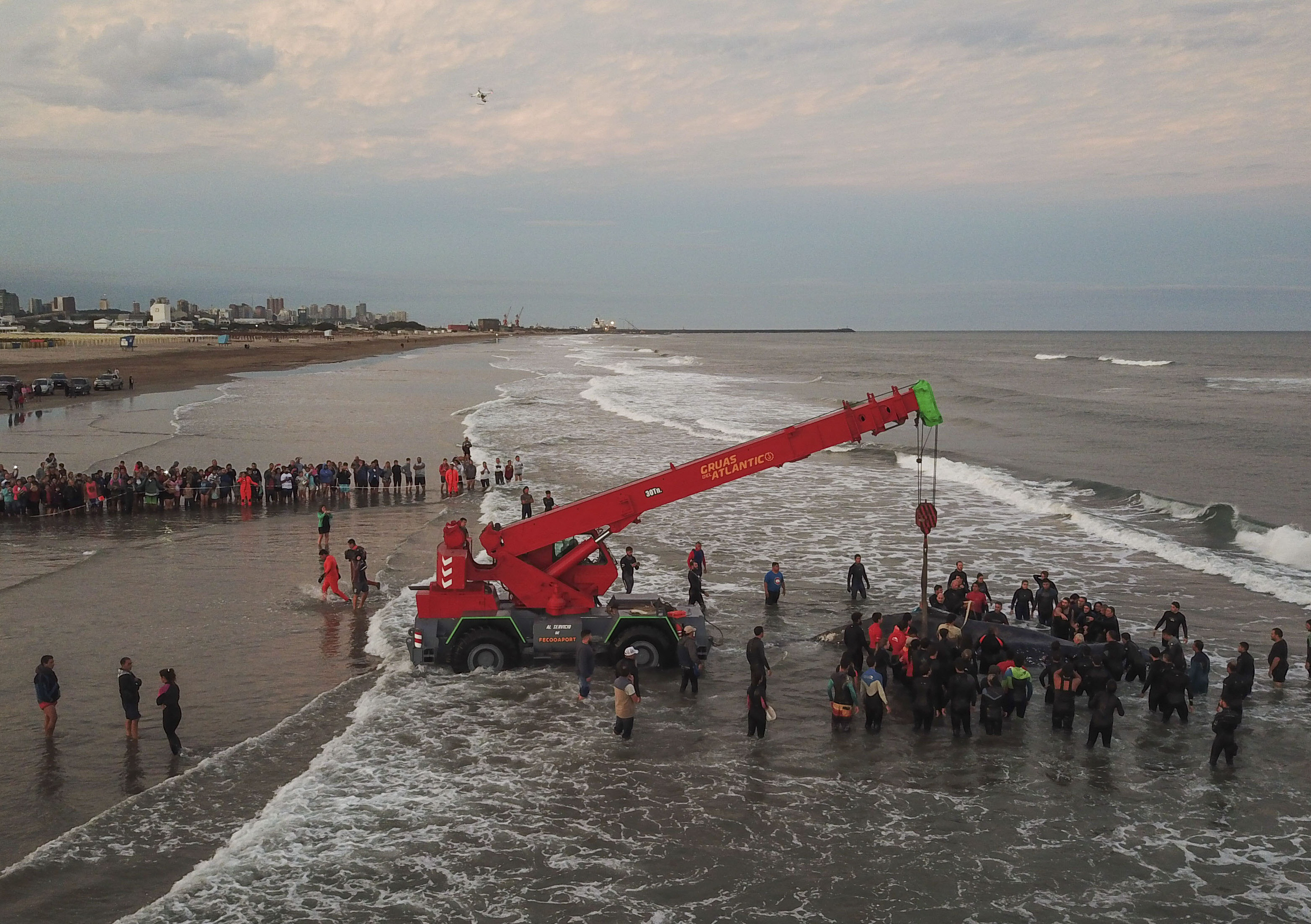 “Me puse contento cuando movió la cola, pero después advertimos que tenía que ver con movimientos reflejo propios de la inminencia de la muerte”, explicó Faiella, quien agregó que el grupo de profesionales que trabajó en el lugar había advertido que el animal también tenía “lesiones en las aletas”.