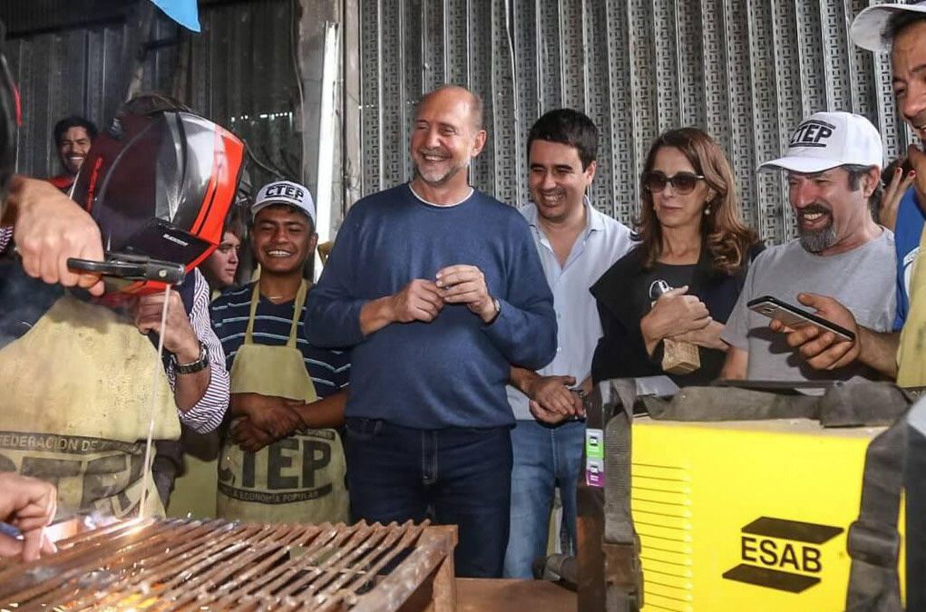 Cara a cara. El candidato kirchnerista, Omar Perotti, basó su campaña en caminatas y múltiples visitas a fábricas. Hoy podría destronar al Socialismo en Santa Fe.
