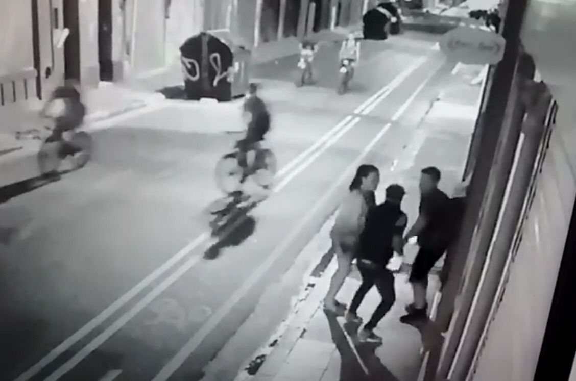 Las imágenes corresponden a una cámara de seguridad de Tacuarí al 400, donde el 30 de diciembre a las 23.20 Christoffer Persson (36) y su novia María Izzo caminaban por la vereda mirando un mapa en la pantalla del celular del hombre cuando salían de cenar de un restaurante. De repente, desde un Peugeot 206 gris plata que circulaba muy despacio se detuvo al paso de la pareja para emboscarla.