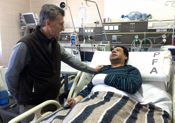 Al salir del hospital, Macri contó que además visitó a otro integrante de la Policía Federal, Maximiliano Leiva, que también fue herido en la semana ‘con un balazo en el pómulo enfrentando a la mafia china que hay en la Argentina, cuando quedaron detenidas más de 30 personas‘.