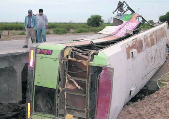 El jefe de bomberos de esa localidad, Walter Ahumada, informó que el accidente ocurrió a las 2.30 cuando el conductor de un camión con papas perdió el control a causa de un bache y un ómnibus que se dirigía en sentido contrario embistió al acoplado y quedó volcado sobre un lateral en un canal aliviador, sin agua. Fallecieron María Ofelia Bazán (56 años) y Ramón Antonio Quiroga (18), quienes viajaban en el micro que había estado la noche anterior en un acto de cierre de campaña de un candidato a comisionado de la localidad catamarqueña El Alto, perteneciente al Frente para la Victoria. Otra mujer murió en el trayecto al hospital.