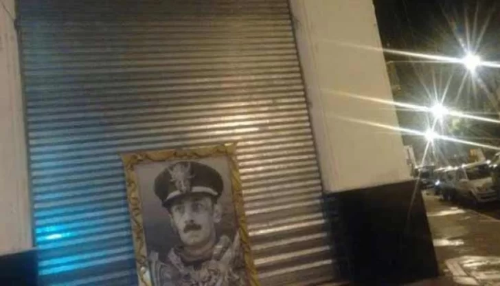 Santa Fe.- Un cuadro con la figura del dictador argentino Rafael Videla, presidente de facto durante la última dictadura militar, apareció el martes por la noche sobre la puerta de un local del Pro ubicado en Maipú y San Lorenzo, en la ciudad de Rosario, en Santa Fe.