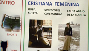 Un cartel similar orienta también a los varones que quieran ir a rezar y les prohibe, por ejemplo, entrar con gorros, ojotas, musculosas o pantalones cortos. La situación generó distintas opiniones. Hay quienes están de acuerdo con la medida, aunque son los menos. ‘Van a la iglesia y no a un boliche’, sostienen.