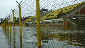 El club Flandria, ubicado en la localidad bonaerense de Jáuregui, también sufrió las consecuencias de la crecida del río Luján, y todas las instalaciones, incluido el estadio "Carlos V", quedaron bajo el agua.
