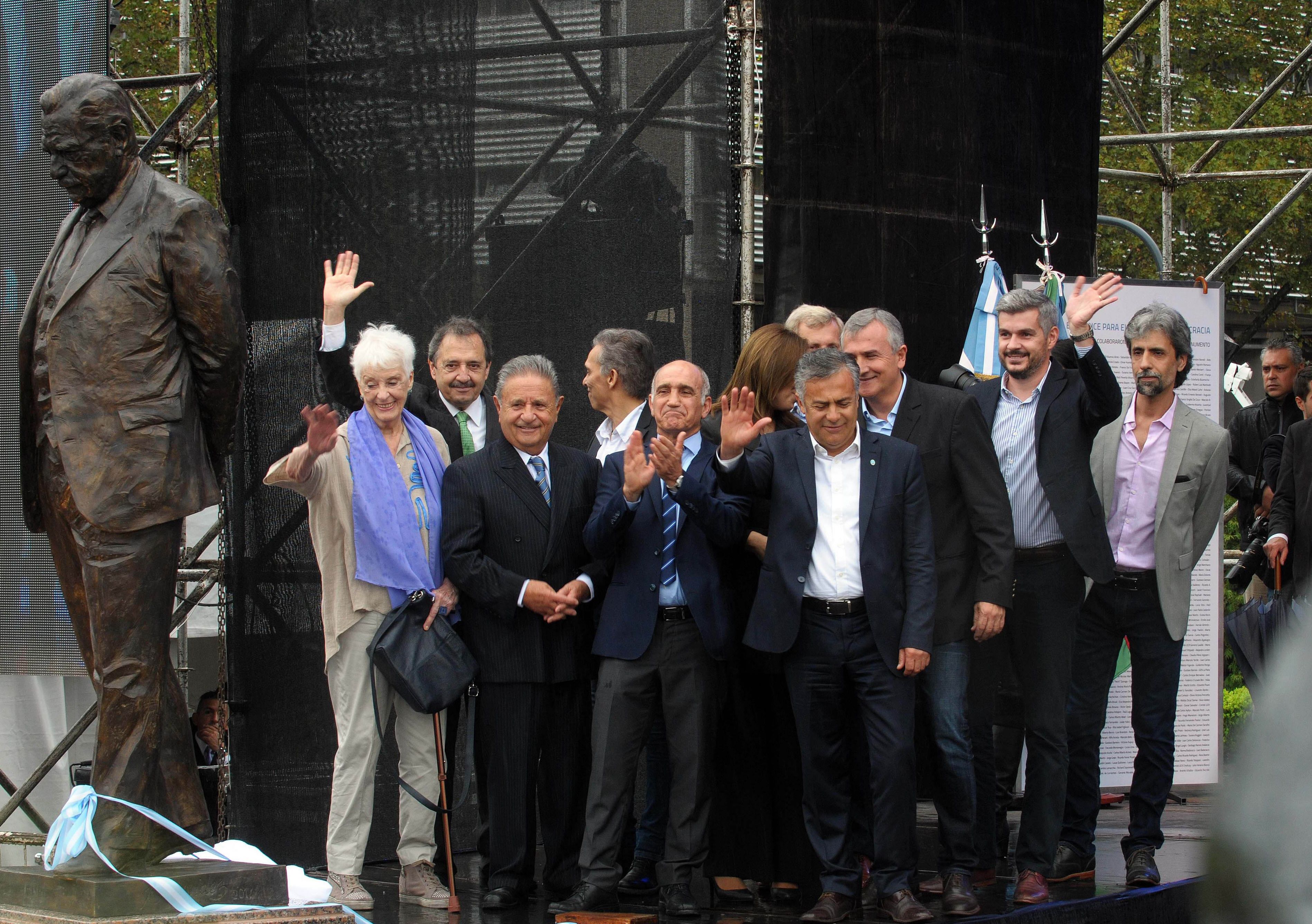 “Cambiemos no es ninguna persona en particular sino una profunda vocación de cambio democrático, de creer en la diversidad, el diálogo, la justicia, en instituciones fuertes y en saldar la deuda social pendiente con personas que venimos de distintos lugares y que tenemos que aprender mucho unas de otras. Y también de los que no son de Cambiemos, y eso es un legado del expresidente”, dijo la gobernadora al inaugurar la estatua, de 2.30 metros de altura.