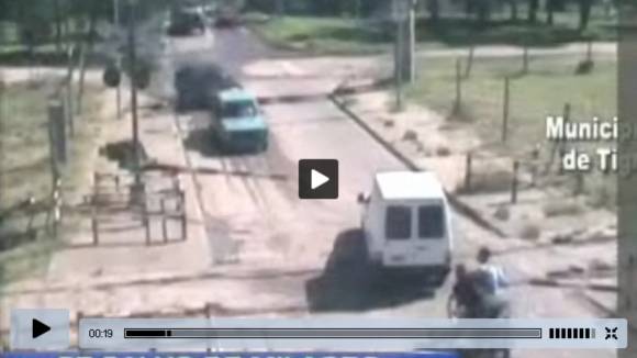 La moto con dos personas esperaba detrás de la Fiorino, cuando el acompañante observó la situación y sin pensarlo salió corriendo a empujar el utilitario con sus manos. Segundos después que el joven logra poner a salvo al conductor y vuelve sobre sus pasos, pasa el tren, casi rozándole el hombro. Si en vez de retroceder, tomaba la decisión de cruzar con la camioneta, no hubiese tenido espacio para escapar de la muerte. Atónito por salvar su vida de milagro, se dio cuenta que volvió a vivir y festeja con su amigo al que abraza emocionadamente.