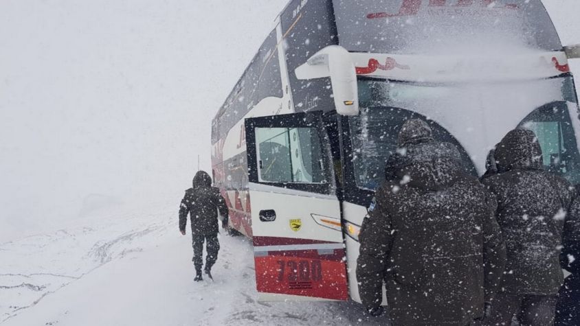Ante la imposibilidad de continuar viaje en esas condiciones meteorológicas, los pasajeros quedaron a resguardo en la aduana de Horcones, mientras que el colectivo fue retirado por personal de Vialidad Nacional.