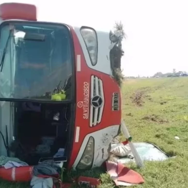 Según revelaron ante los medios, el accidente se produjo luego de que una llanta del colectivo explotara, haciendo que el chofer pierda el control y se vaya a la banquina. Debido a la velocidad, no logró frenar el vehículo pesado y desató un aparatoso siniestro que por fortuna no tuvo que lamentar muertes.