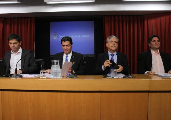 Así lo anunciaron ayer por la mañana en conferencia en el Ministerio de Economía el jefe de Gabinete, Jorge Capitanich, el ministro de Planificación, Julio de Vido, el de Economía, Axel Kicillof, y el secretario de Comunicaciones, Norberto Berner.