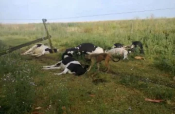 Seis vacas murieron fulminadas por un rayo el sábado pasado en una zona de campos en el partido bonaerense de 9 de Julio, en medio de un fuerte temporal. El rayo dio con un poste eléctrico de la red y terminó descargando contra bovinos de la raza Holando.