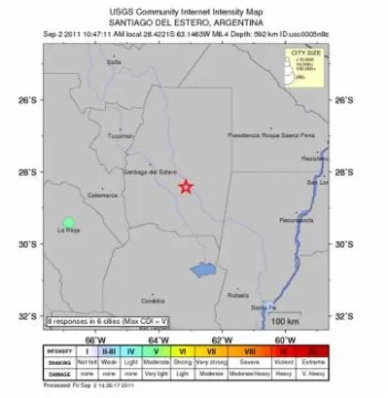 Santiago del Estero, 2 de septiembre.- El sismo, de 6,4 grados, fue cerca de la ciudad de Añatuya. El epicentro se registró a 600 kilómetros de profundidad y no hay reportes de daños ni víctima. Pero el temblor se sintió incluso en Buenos Aires.