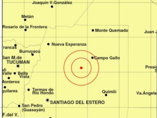 El temblor fue percibido a las 19.09 y tuvo como epicentro 42 kilómetros al sudoeste de la localidad de Campo Gallo, 152 km al noreste de la capital provincial y a 202 km al este de la ciudad de San Miguel de Tucumán.