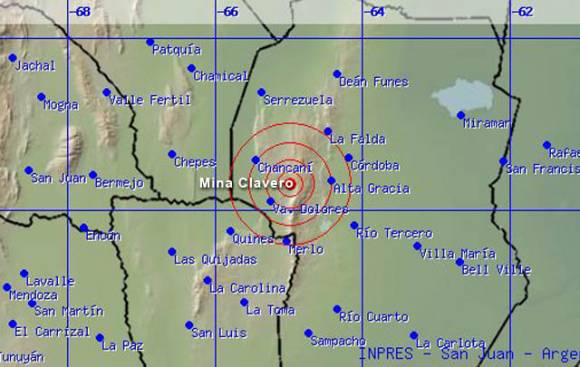 El epicentro se ubicó cerca de Mina Clavero, 80 kilómetros al suroeste de la capital provincial.