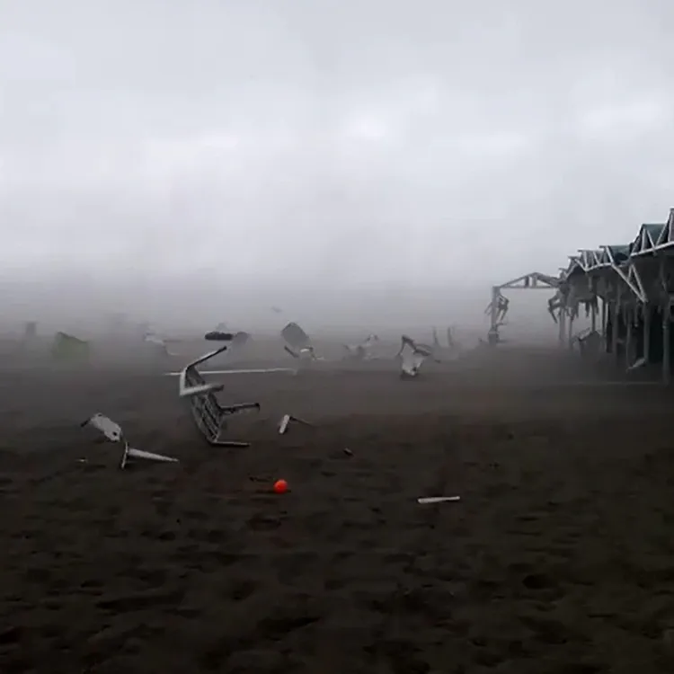 #Impactante El viento destrozó el balneario El Faro, en Ostende. #InfocieloVerano te muestra las imágenes del temporal y cómo quedó el lugar.