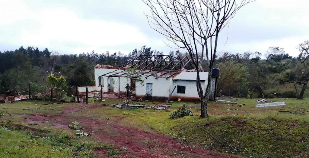 Además, hubo otra vivienda dañada y un aserradero quedó literalmente destruido a causa del derrumbe de paredes y techo.