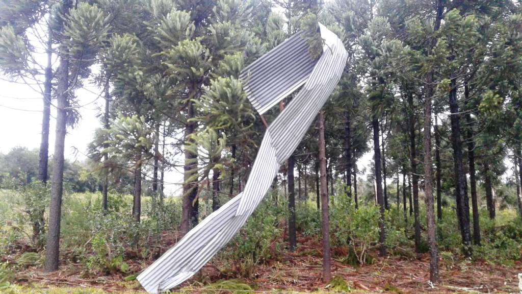 La fuerza del viento quedó demostrada en algunas forestaciones, que fueron literalmente arrasadas a unos tres metros de altura, y por las chapas totalmente retorcidas que quedaron contra los troncos de los árboles.