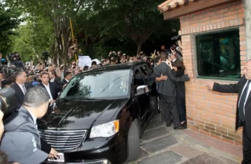 Los simpatizantes, la mayoría señoras, se acercaron a la residencia oficial con carteles con las leyendas ‘Bienvenido señor presidente‘, ‘Cárcel a los korruptos‘, ‘Campagnoli para la Procuración‘ y le gritaban ‘Sí se puede, sí se puede…‘ la arenga durante la campaña de Cambiemos.
