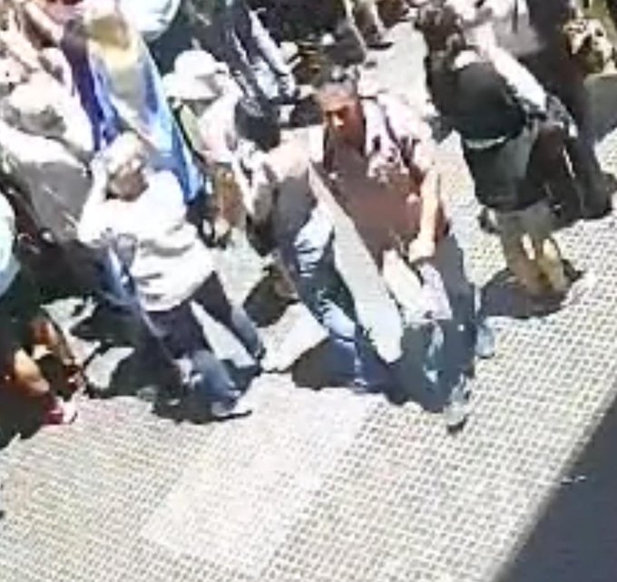 El nombre del sospechoso todavía se desconoce. Por lo que puede verse en las imágenes, es un hombre de poco más de 50 años, vestido con camisa rosa, lentes y una mochila.