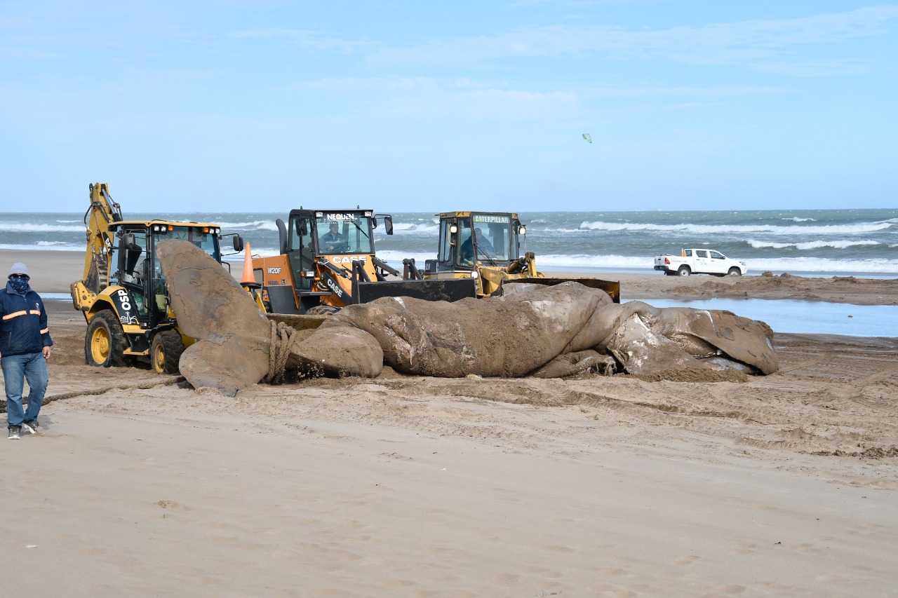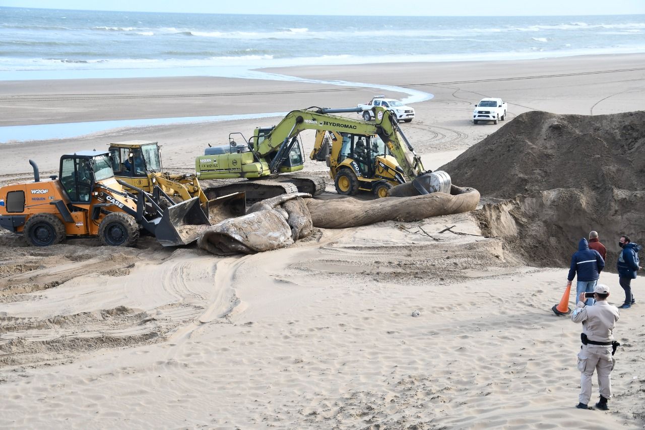 “No es un acontecimiento común. Sospechamos que el mamífero murió en el mar y la corriente la trajo a la costa. Cuando llegamos en horas de la mañana con los técnicos, lo que hicieron fue tomar todas la mediciones al animal, de músculo y piel para después llevar a analizar. Lo que estamos haciendo ahora es la construcción de un pozo para poder enterrar al animal y ponerlo acá en la playa”, concluyó la Directora.