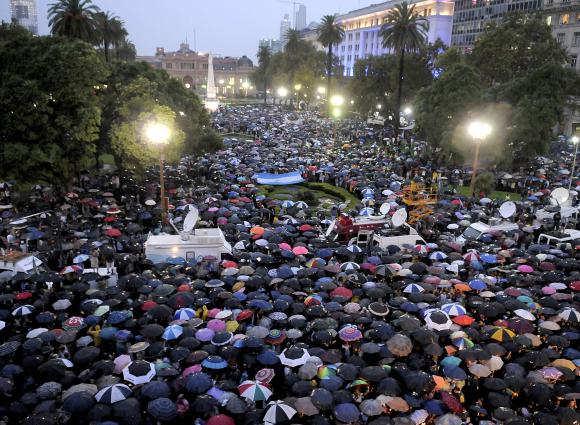 Cientos de miles de personas marcharon ayer en silencio y bajo una lluvia torrencial en la ciudad de Buenos Aires en homenaje a Alberto Nisman un mes después de la muerte del fiscal, hallado sin vida en su casa cuatro días después de denunciar a la presidenta Cristina Fernández de Kirchner.