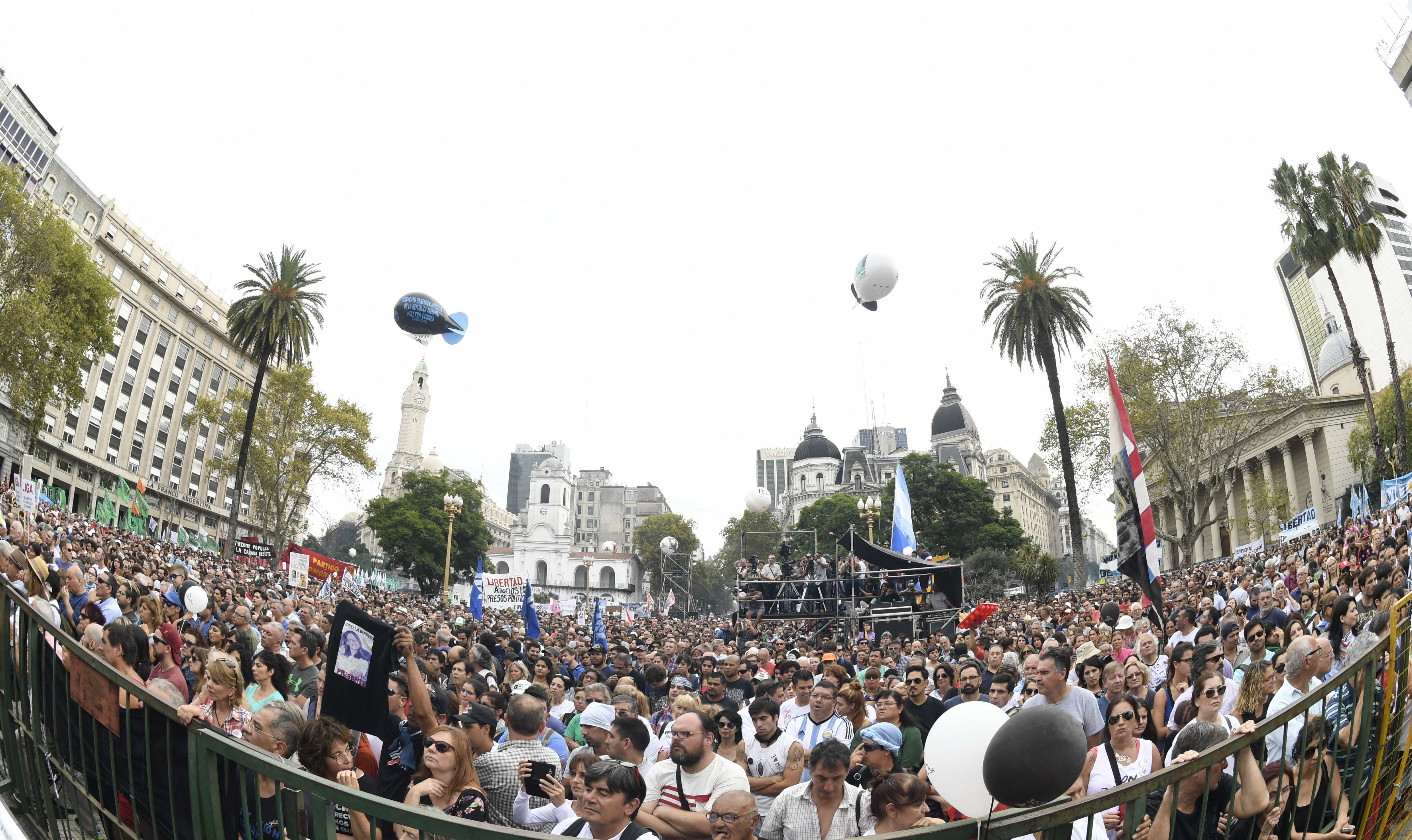 En todo el país. Miles de personas (izquierda) participaron del acto en Plaza de Mayo, en Buenos Aires.